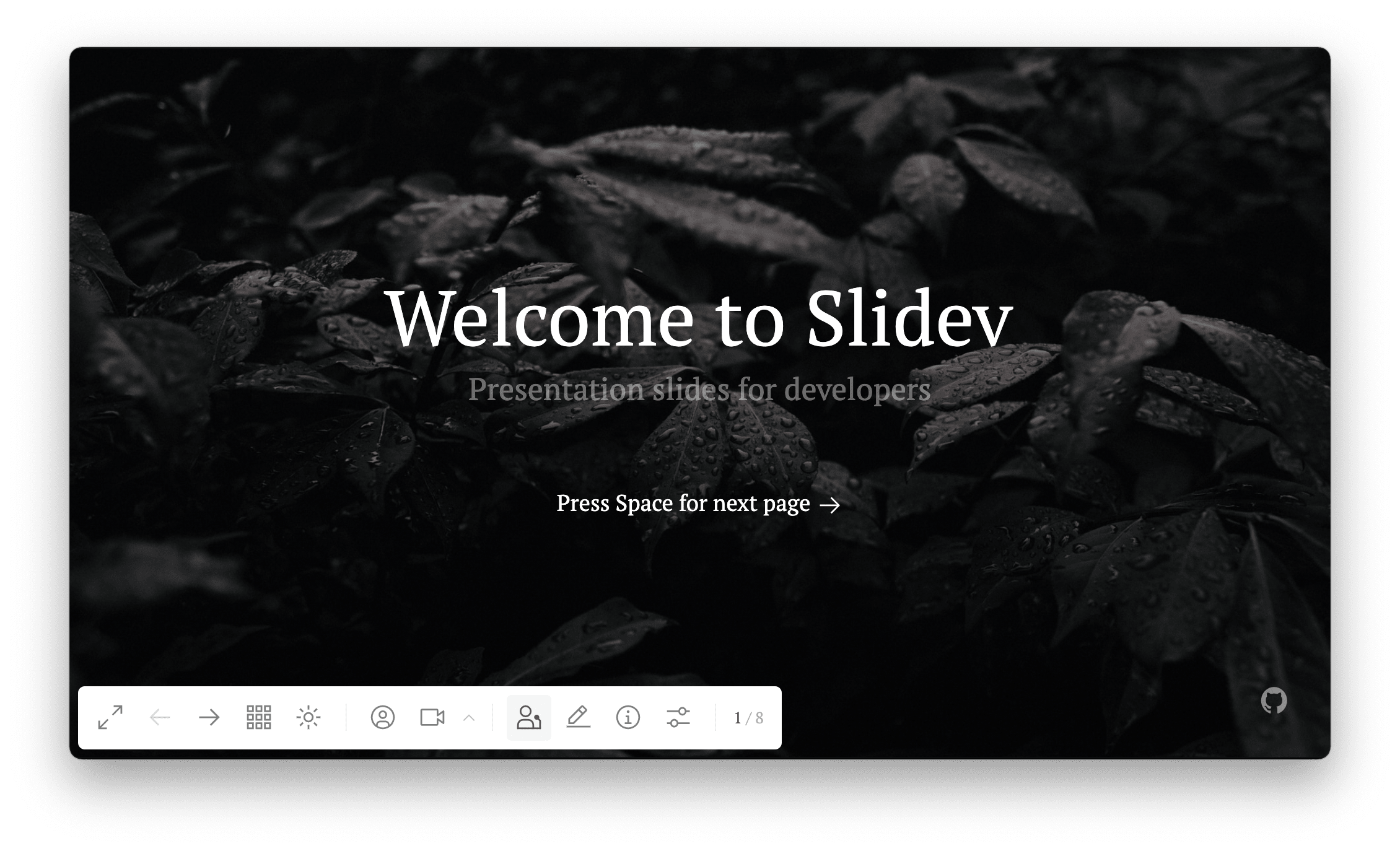 Move your mouse to the bottom left corner of Slidev page to make the navigation bar appear.